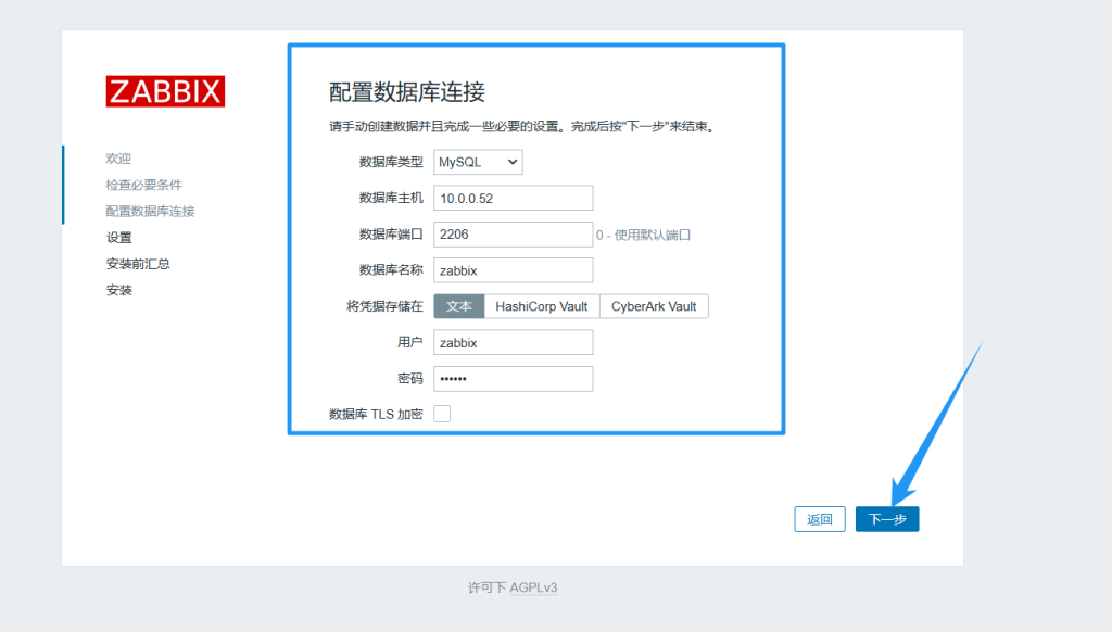 [root@zabbix-01:~]# egrep '^DBHost|^DBName|^DBUser|^DBPassword' /etc/zabbix/zabbix_server.conf
